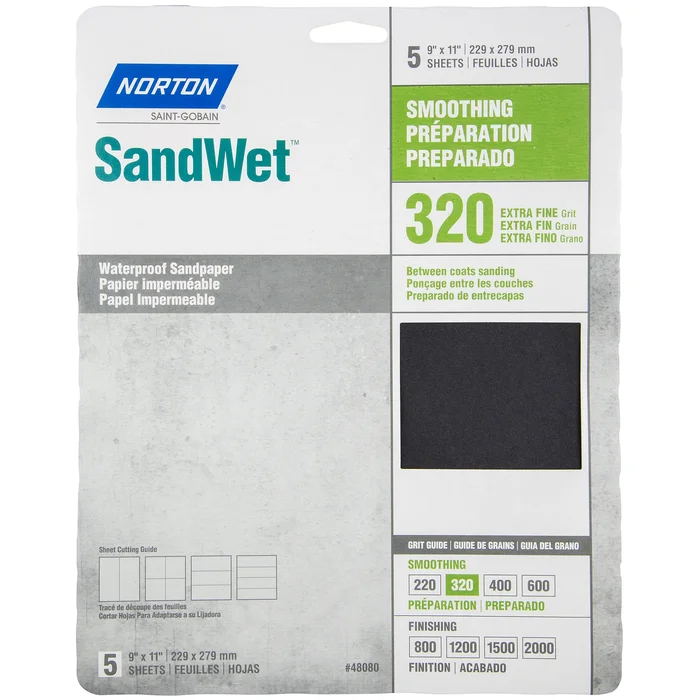 48080 Sanding Sheet, 9 In L, 11 In W, 320 Grit, Super Fine, Aluminum Oxide Abrasive