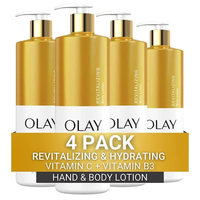 Olay Revitalizing & Hydrating Body Lotion for Women with Lightweight Vitamin C, Visibly Improves Skin, 17 fl oz (Pack of 4)