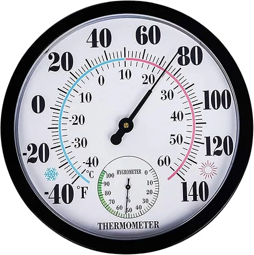 5′ Indoor Outdoor Hygrometer/Thermometer, Humidity Gauge Indicator Temperature Humidity Monitor, Analog Hygrometer Humidor (English Version)