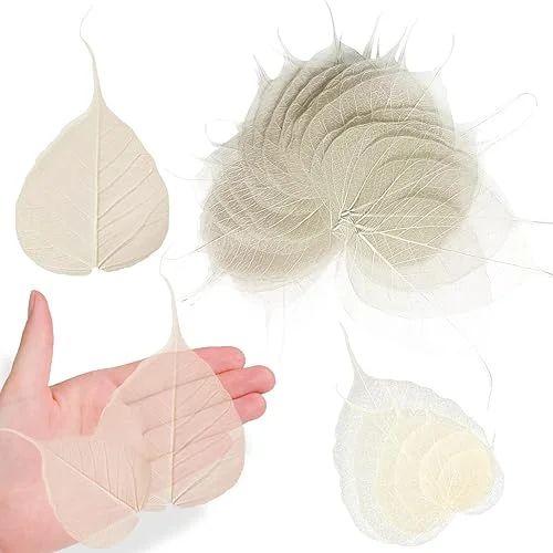 Dried Pressed Skeleton Leaves for Resin, 42PCS White Natural Real Dry BodhiSkeleton Leaf Vein for Resin Art DIY Craft Card Scrapbooking Candle Making Phone Case Wedding Decoration