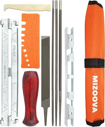 10 Piece Chainsaw Sharpener File Kit with 5/32 3/16 7/32 Round Files, 6 Inch Flat File, Depth Gauge, Filing Guide Holder, Hardwood Handle