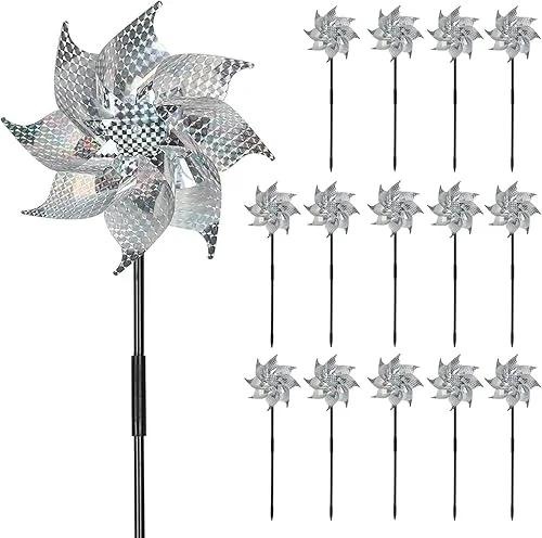 15 Pack Reflective Pinwheels with Stakes, 18.5′ Plastic Bird Blinder Sparkly Pin Wheel Scare Birds and Animals Away Spinner Pinwheels for Lawn Yard Garden Farm