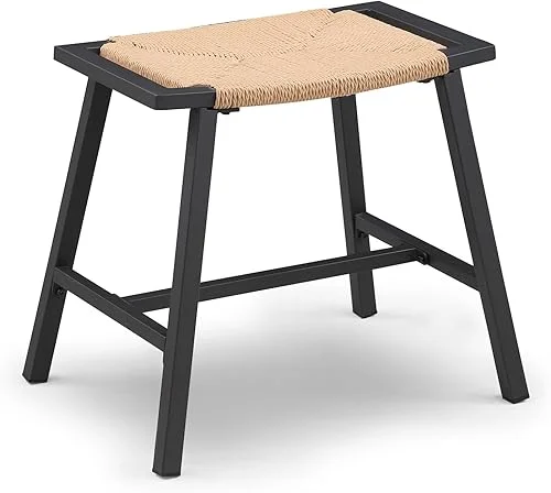 18 inch Stools, Dining Table Height Chairs Short Stools, Backless Kitchen Saddle Small Stool for Island, Outdoor Brown Rope Wicker Pattern Seat,Black Metal Waterproof Powder Coat, 818DLB1