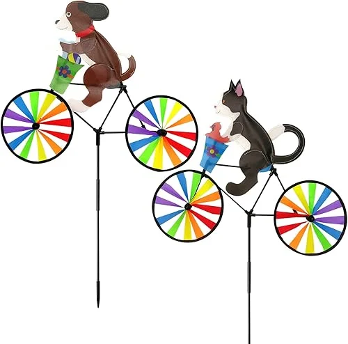 2 Pack 20 Inches Animal Bike Spinners Decoration, Colorful Dog and Cat Pinwheels with Stakes, Windmill Wind Spinner for Yard Garden Lawn, Large Pet Pin Wheels Outdoor Decor Gifts for Kids