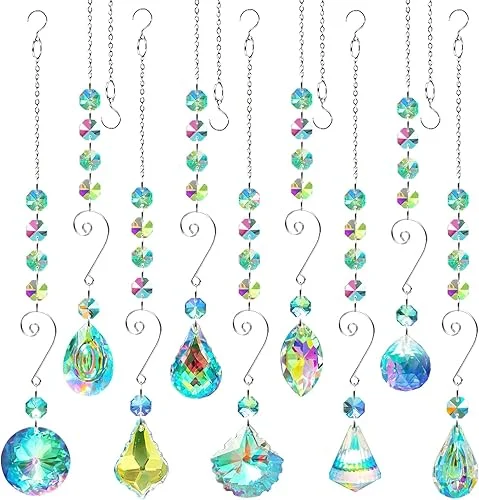 9 Pieces Sun Catchers Indoor Window Suncatcher Crystals Prisms with Chain Pendant Colorful Hanging Ornaments for Windows Chandelier Office Home Garden Decor
