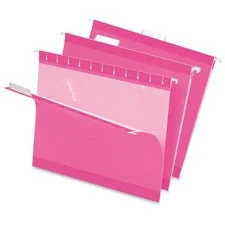 Colored Reinforced Hanging Folders, Letter Size, 1/5-cut Tabs, Pink, 25/box