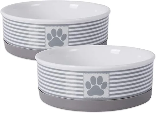 Bone Dry Paw & Patch Ceramic Pet Collection, Medium Set, 6×2′, Gray, 2 Piece