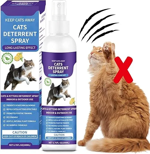 Cat Deterrent Spray, 200ML Cat Repellent Spray, Indoor & Outdoor Anti-Scratch Cat Repellent for Furniture, Sofas, Rugs, Curtains, and Plants, Alcohol-Free & Non-Toxic Formula Repellent for Cats