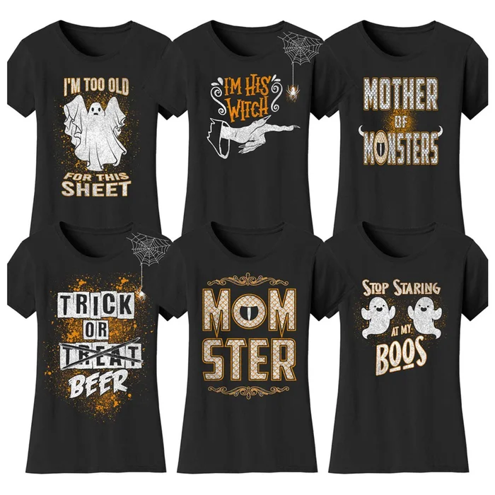 Women's 100% Cotton T-Shirts with Halloween Prints