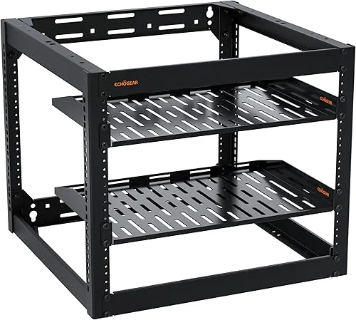 ECHOGEAR 10U Network Rack – Wall Mountable Heavy Duty 4 Post Design Holds All Your Networking & AV Gear – Open Frame Design Includes 2 1U Vented Shelves & Mounting Hardware