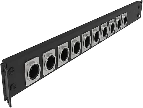 Jingchengmei 12 Port/Way/Hole Hinged Patch Panel – 1U 19′ Rack Mount D-Type Connectors – Audio with Hinged Side (H1U12D, Black)