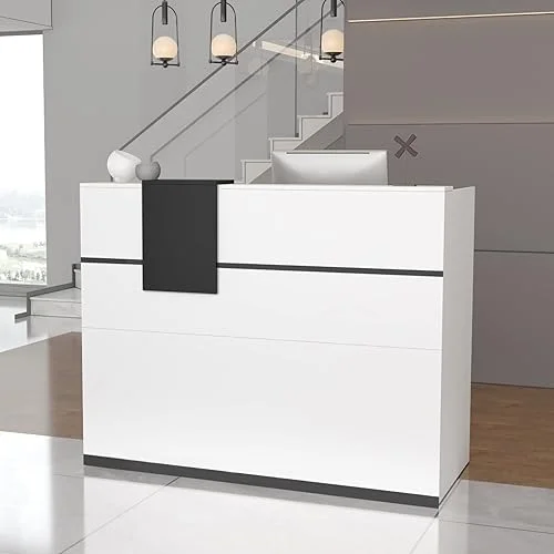 Front Desk Reception Counter, Reception Desk with Counter, with Lockable Drawer Modern Retail Counter Checkout for Salon Beauty Salon Supermarket