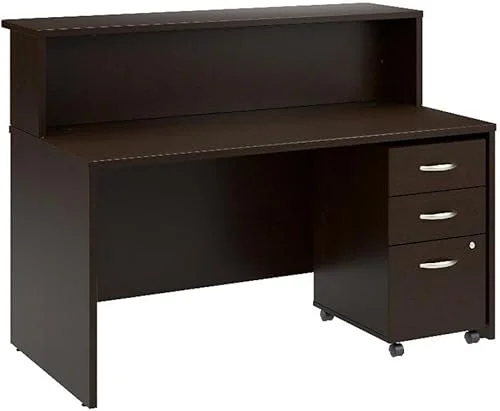 Bush Business Furniture Arrive 60W x 30D Reception Desk with Shelf and Mobile File Cabinet in Mocha Cherry