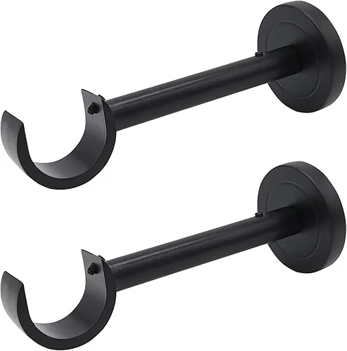 Curtain Rod Holders, 2pcs Heavy Duty Curtain Rod Brackets Long 5 inch Projection Bracket Holder with Installation Accessories Included, Set of 2, Black