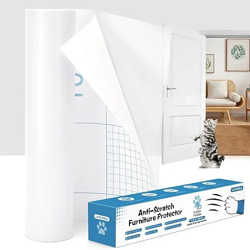 [Thicken Vinyl] Cat Scratch Furniture Protector, 118’x17′ Couch Protector from Cat Claws, Single-Sided Sticky Anti Scratch Furniture Protector,Extended Size Protects More Furniture