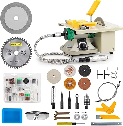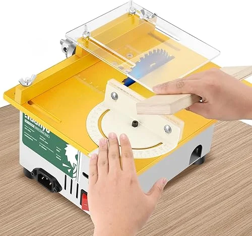 Huanyu Mini Table Saw 300W Precision Liftable Blade Hobby Saws Woodcrafts 1.14′ Cut Depth Multifunctional Cutting Polishing Portable Electric Small Table Saw for DIY Woodworking Model Making