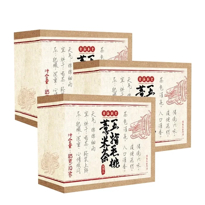 Five Finger Peach Coix Seed Water Regulating Spleen and Stomach Dampness Removing Health Tea 85g (8.5g * 10) * 3 boxes