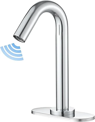 BWE Touchless Bathroom Sink Faucet,Chrome Automatic Motion Sensor Faucet,Hand-Free Electric Smart Commercial Sink Faucet,with Hole Cover Plate and Control Box,Battery or Plug-in Powered