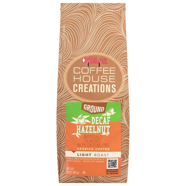 TOPS Coffee House Creations, Light Roast Hazelnut Decaf 100% Arabica Ground Coffee