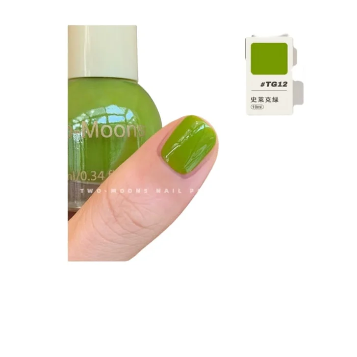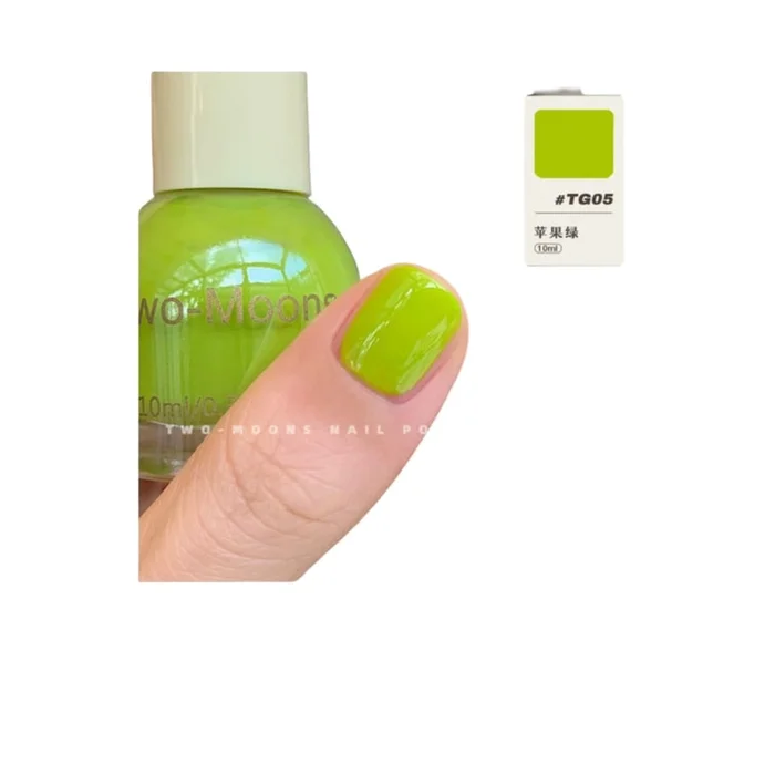 Tow moons No-Bake Non-Tear Oily Nail Polish Quick Drying Long Lasting Apple Green 10ml*1