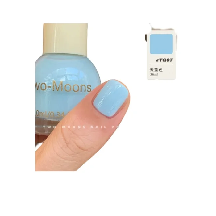 Tow moons No-Bake Non-Tear Oily Nail Polish Quick Dry Long Lasting Sky Blue 10ml*1