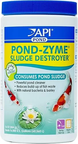 API POND-ZYME SLUDGE DESTROYER Pond Cleaner With Natural Pond Bacteria And Barley, 1-Pound Container