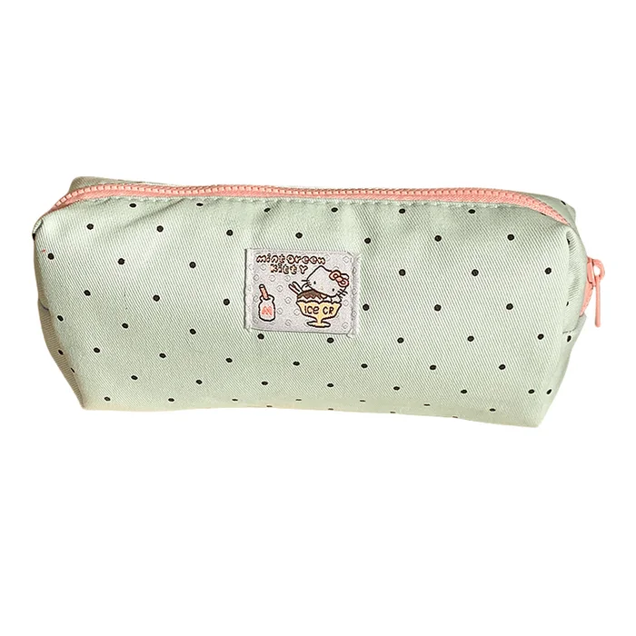 Cute polka dot Hello Kitty student storage bag stationery box pen case green 1 piece