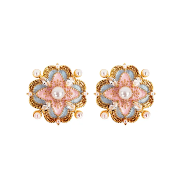 Loulan Collection Clover Earrings | 22mm Chinese Style Jewelry | Enamel Filigree Art | Sterling Silver Posts