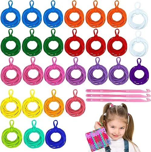 Hazms 293 Pcs Loom Potholder Loops 7′ Weaving Loom Loops for Kids Weaving Craft with 3 Pcs Crochet Hooks for DIY Crafts Supplies Compatible with 7 Inch Weaving Loom