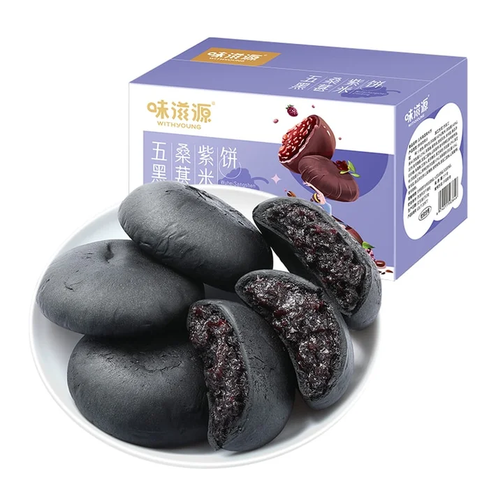 Five black mulberry purple rice cake breakfast snack food coarse grain bread 300g/ box