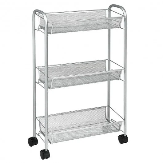 4-Tier Rolling Wood Kitchen Trolley Island Storage Cabinet