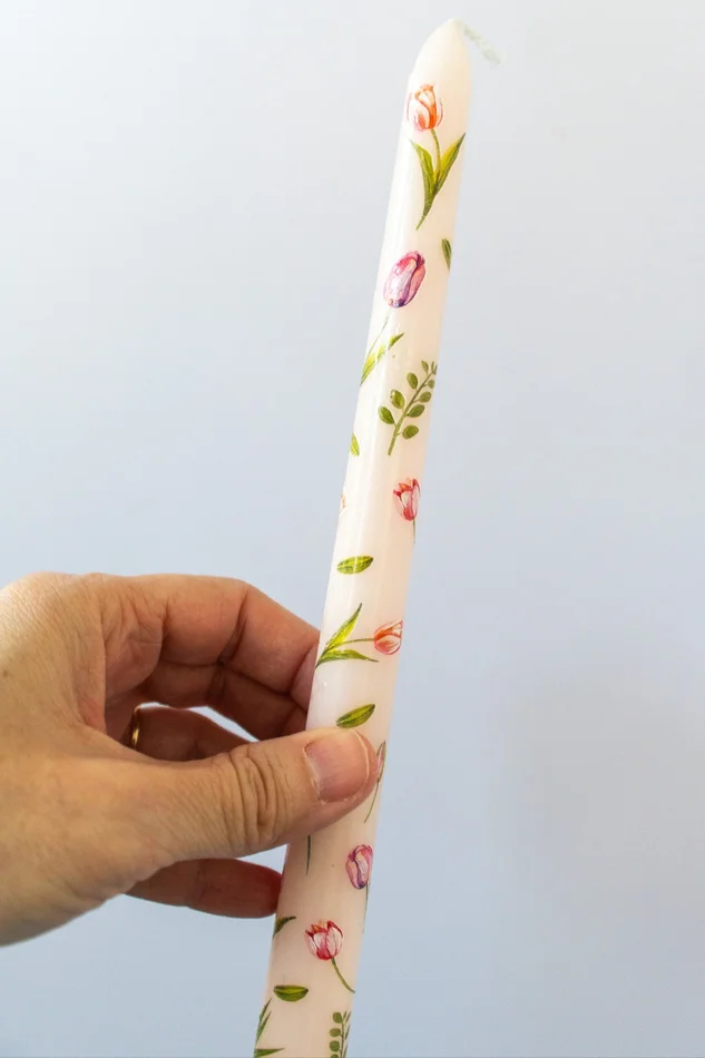 Housed in a glass vessel etched with elegant, frosted stripes to complement any decor.