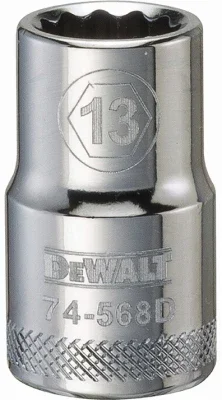 DeWALT Socket Set, Metric, Specifications: 3/4 in Drive Size, Number of Pieces: 12, Includes: (12) 22mm, 24mm, 25mm, 26mm, 27mm, 30mm, 32mm, 33mm, 35mm, 36mm, 38mm and 41mm Deep Impact Sockets