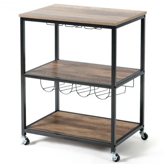 3 Drawer Lateral File Cabinet on Wheels with Storage Shelves-Brown