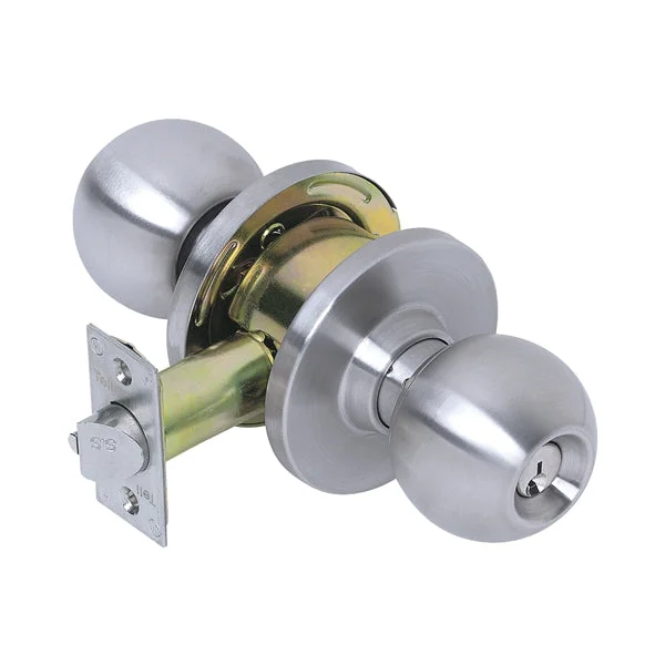 For professional needs such as small apartments, churches, restrooms and small offices, specifically designed where basic security needs or specific codes must be met, but usage is low to moderate. Outside knob is fixed, entrance by key only, inside knob always unlocked. 1-Piece knob for better security and appearance. Solid brass trim and all metal parts. Wrought brass exposed trim. Pressure cast zinc tubular lock housing. Key removable outside knob for easy cylinder replacement. 3-Piece assembly for easy installation. SecureKey technology enables you to re-key your locks in seconds.