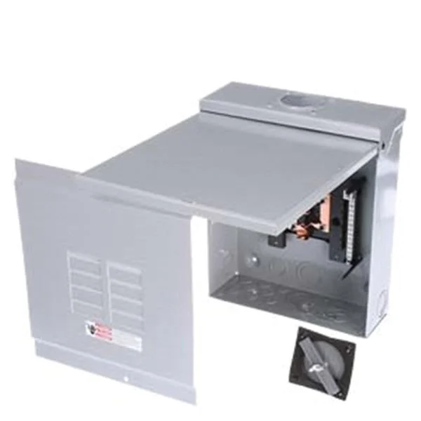 Single phase, 3-wire, 22K A/C main breaker factory installed. Aluminum bus bar, tin-plated. ANSI 61 gray powder coated. Suitable for use as service equipment when main breaker is installed or when not more than simain disconnecting means are provided. Convertible from main breaker to main lug. NEMA Type 1. 14-1/4 in W 3.88 in D.
